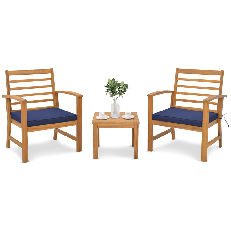 3 Pieces Outdoor Furniture Set with Soft Seat Cushions, Navy