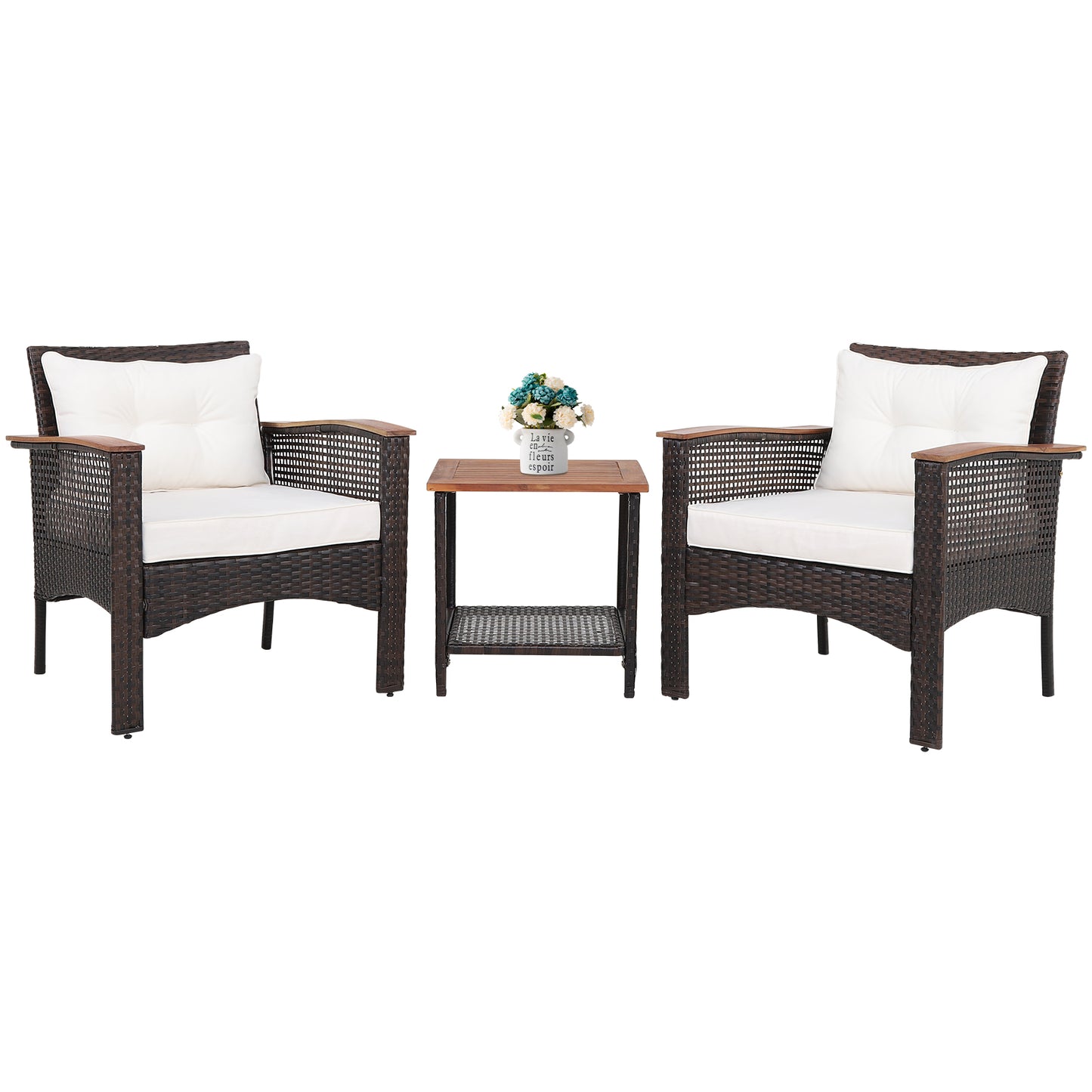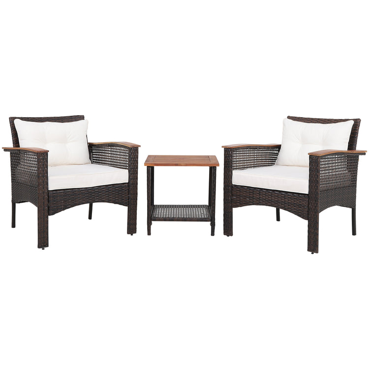 Ensemble de meubles de patio en rotin 3 pièces avec plateau en bois d'acacia, blanc cassé