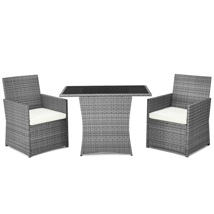 Avec des dossiers incurvés, des accoudoirs confortables et des coussins moelleux, cet ensemble bistro extérieur offre un confort optimal pour la détente en plein air. Compte tenu des conditions météorologiques changeantes, cet ensemble de salle à manger de patio est construit avec une structure en acier antirouille et du rotin PE résistant aux intempéries. Si vous renversez accidentellement une boisson sur la table ou les coussins, ne vous inquiétez pas. Le plateau lisse en verre trempé durable est facile à nettoyer. Et les housses de coussin avec fermeture éclair peuvent être détachables pour un entretien facile. Après l'avoir utilisé, vous pouvez ranger 2 chaises sous la table pour économiser votre espace extérieur.