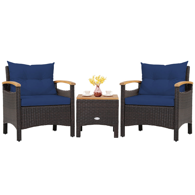 3 Pieces Patio Rattan Furniture Set with Removable Cushion, Navy
