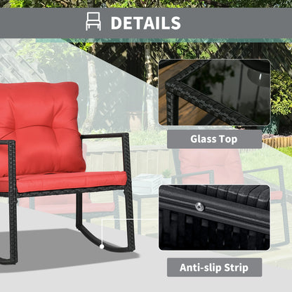 Ensemble de Bistro à Bascule 3 Pièces, Meubles de Patio en Osier d'Extérieur, Rouge