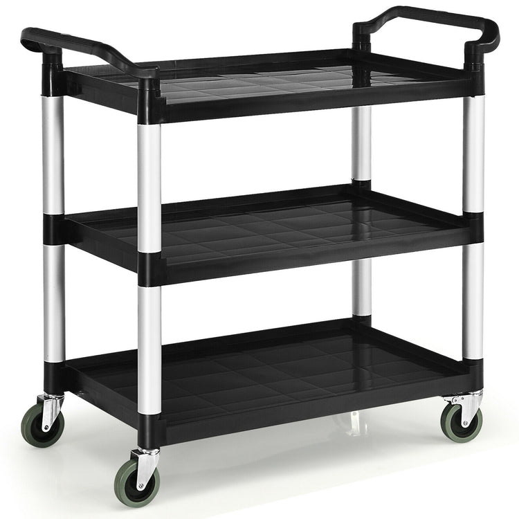 Chariot de service utilitaire à 3 étagères, cadre en aluminium, capacité de 490 lb, avec roulettes, noir