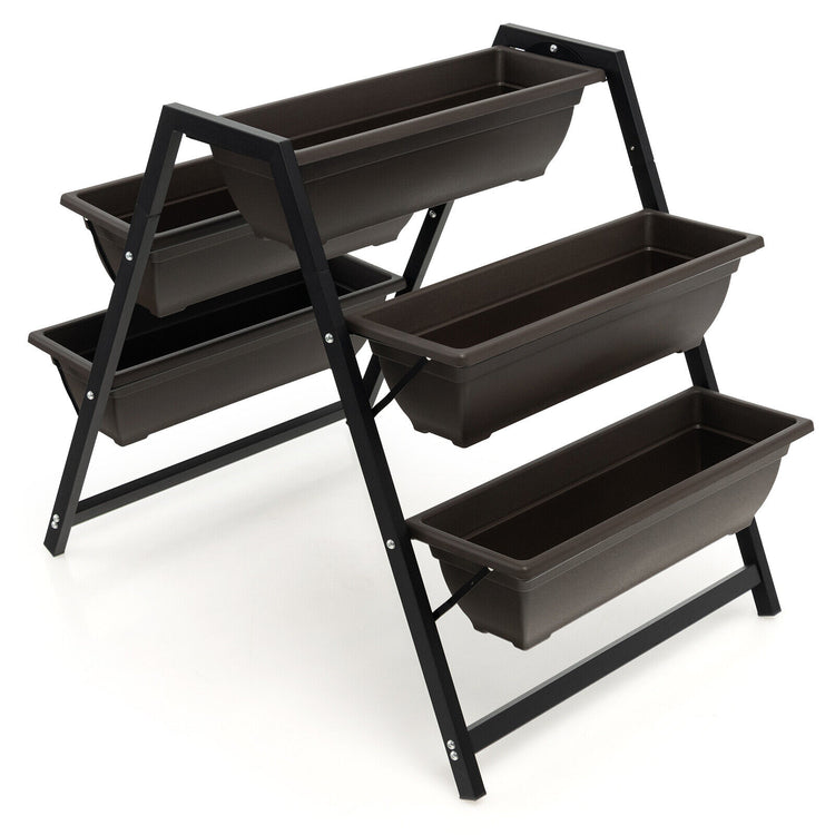 Lit de jardin surélevé vertical à 3 niveaux avec 5 bacs à plantes, marron