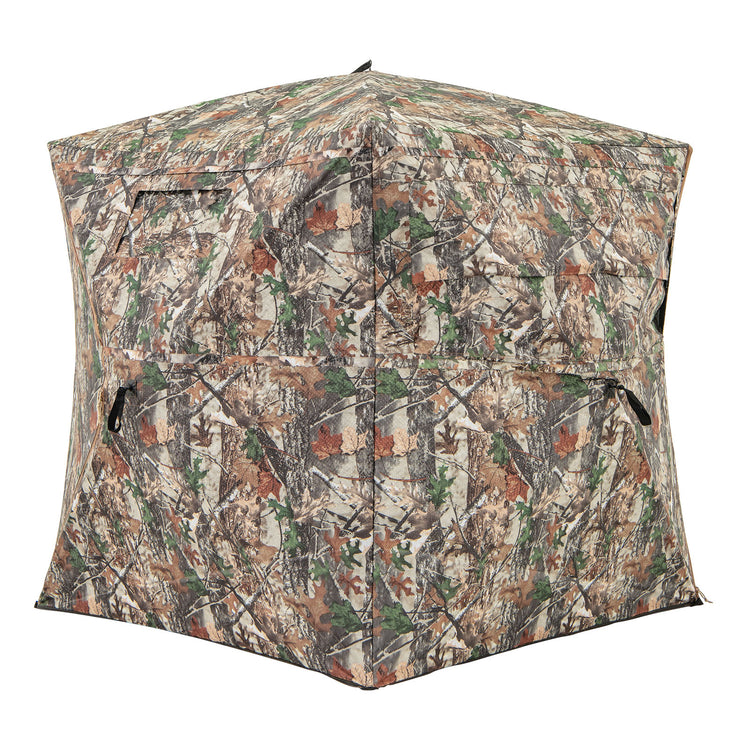 • Boasts 4 full one-way see-through panels, provide unparalleled 360 degree visibility• Adopts a full-opened side panel, serve as a closed hunting tent or hunting fence