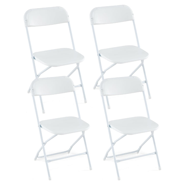 4 chaises pliantes en métal, siège et dossier en plastique, blanc