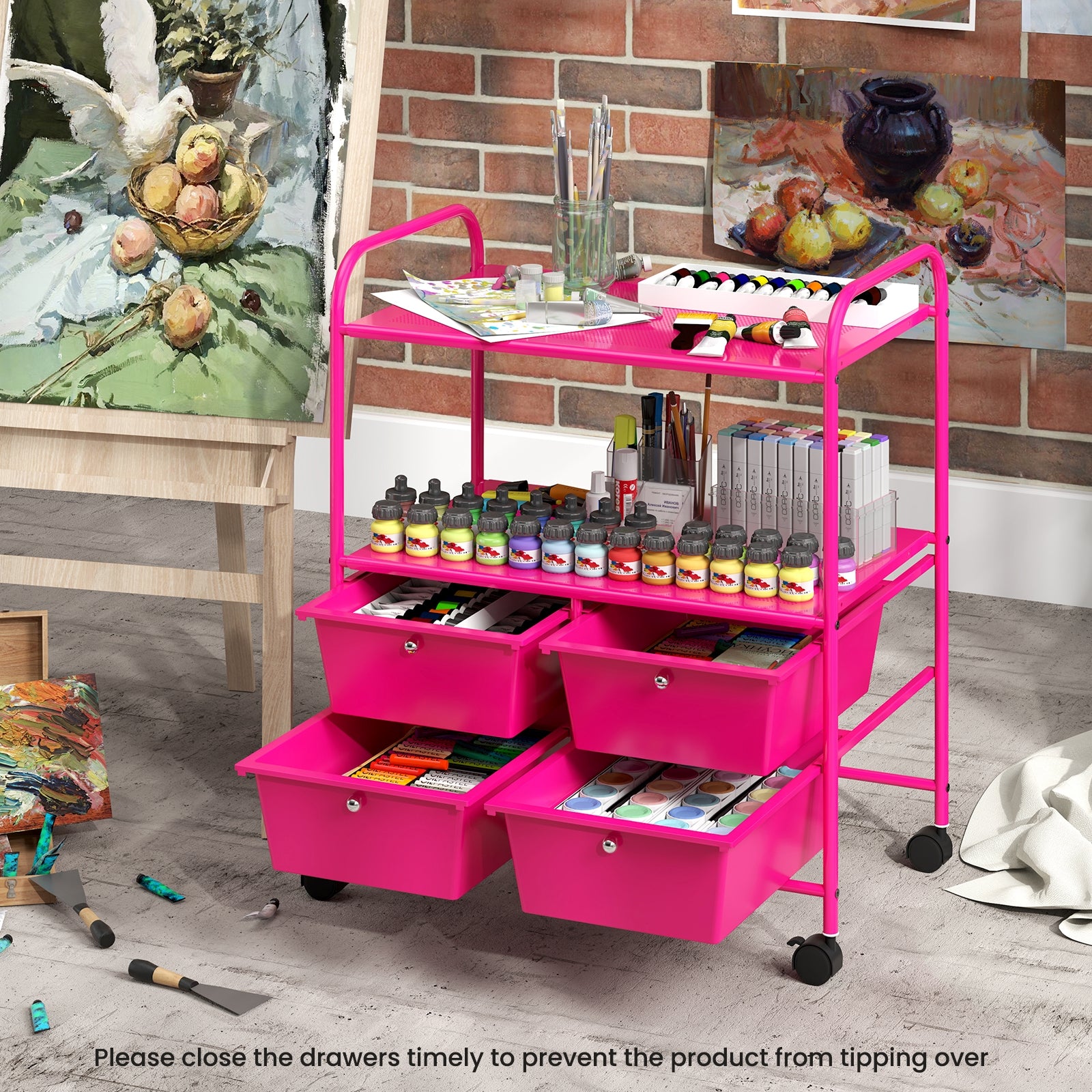 Chariot de rangement roulant à 4 tiroirs, Rose