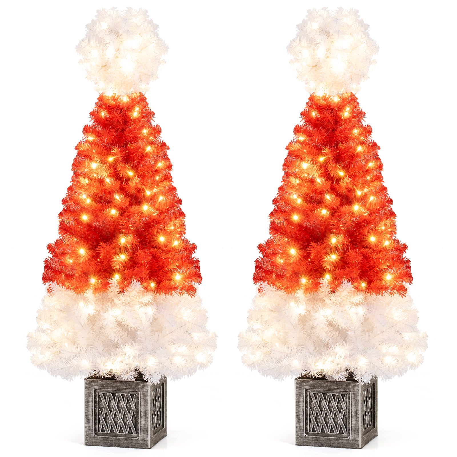 4 Feet Artificial Christmas Tree with 300 Branch Tips and 100 Warm White LED Lights, Red
