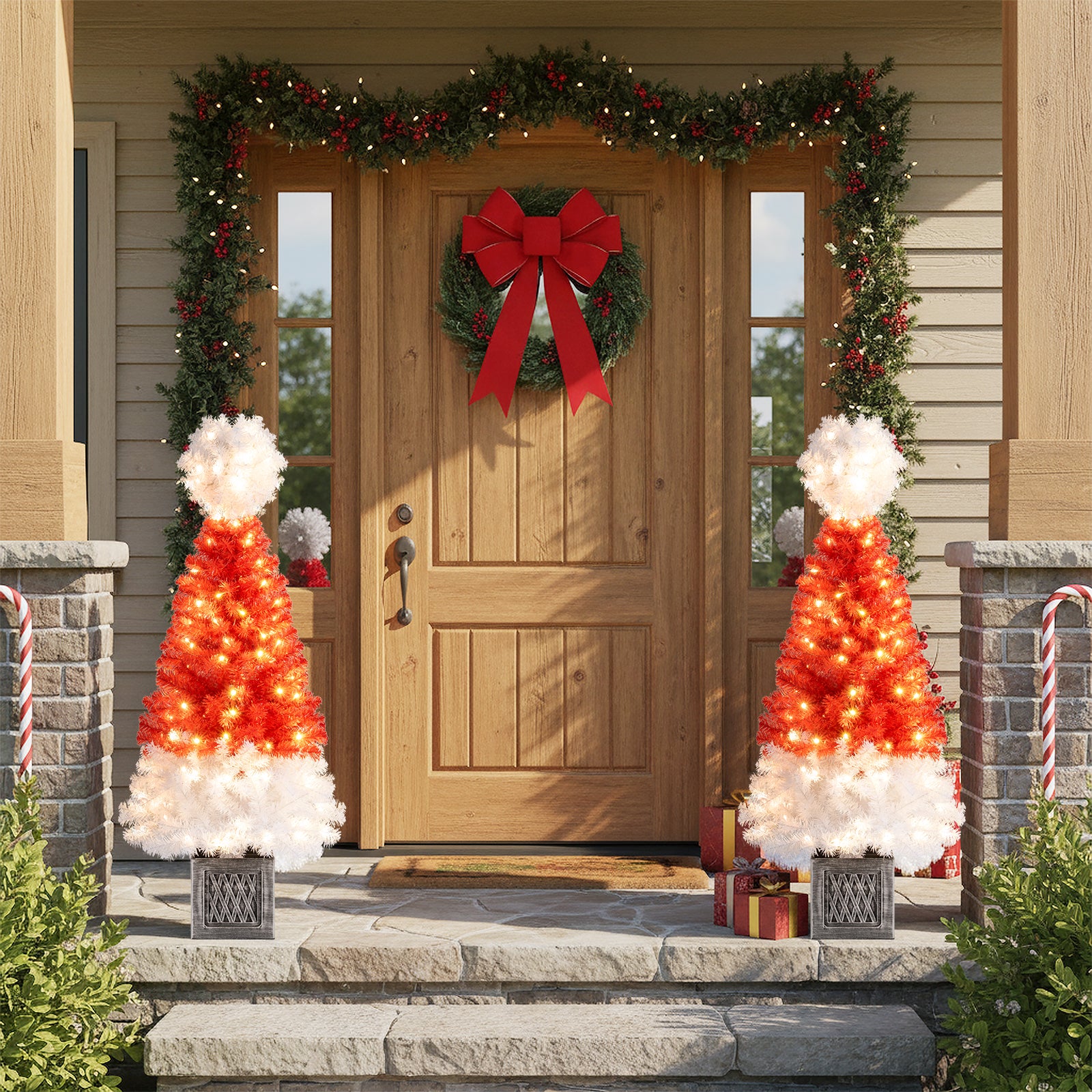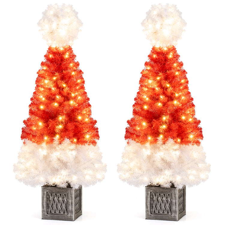 Santa Hat-Inspired Design: Infuse your home with Christmas charm thanks to the 4 ft potted Xmas tree's Santa hat-inspired design, which effortlessly stands out in offices, schools, homes, shops, carnivals, and more.Full-Bodied Branches: The artificial Christmas tree features 300 branch tips that are made of 100% new PVC material. Designed to be fireproof, anti-fading, non-allergic, and smell-free, this tree ensures safety and lasting vibrant color.