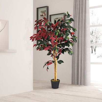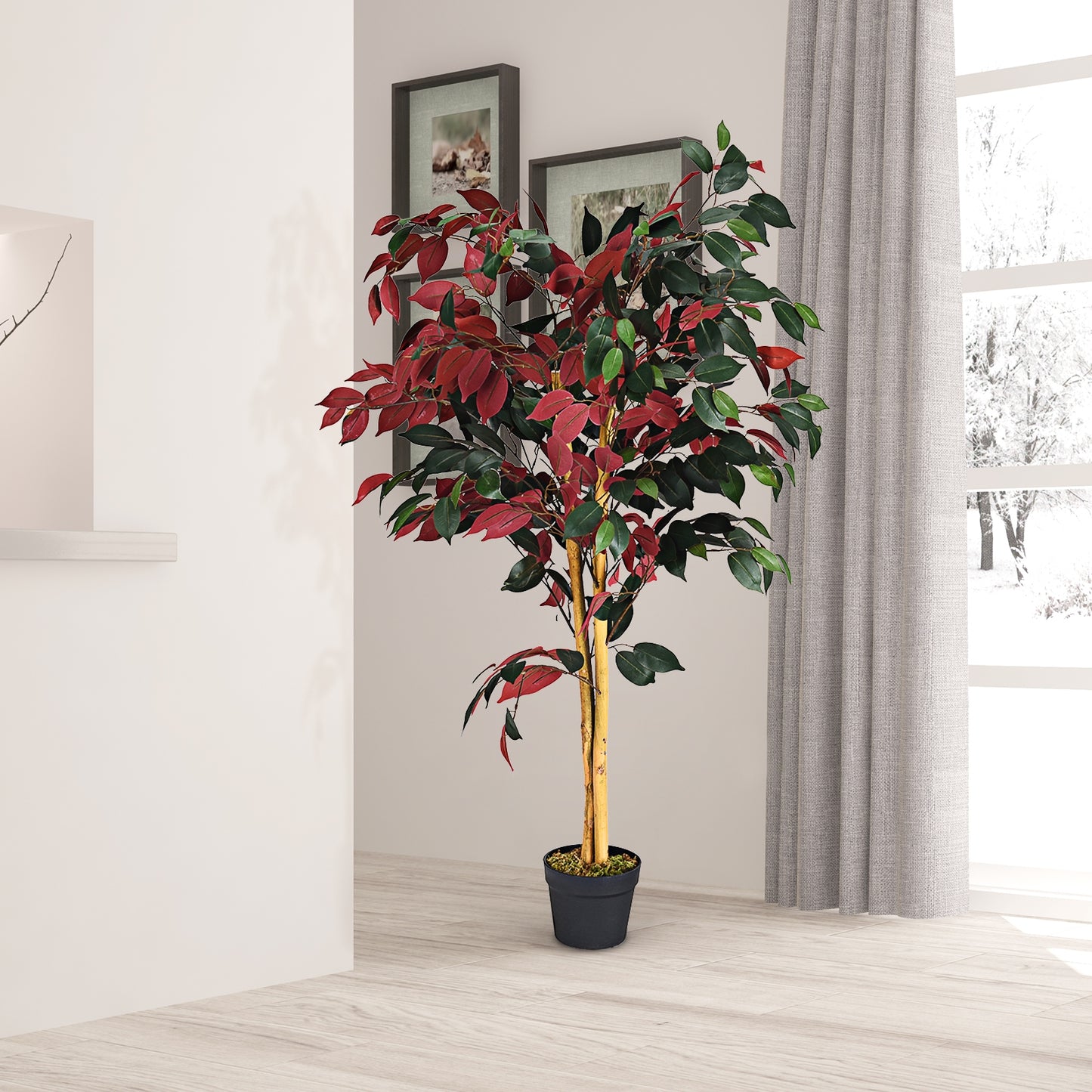 4 Ft Artificial Ficus Tree, Nursery Pot, Red