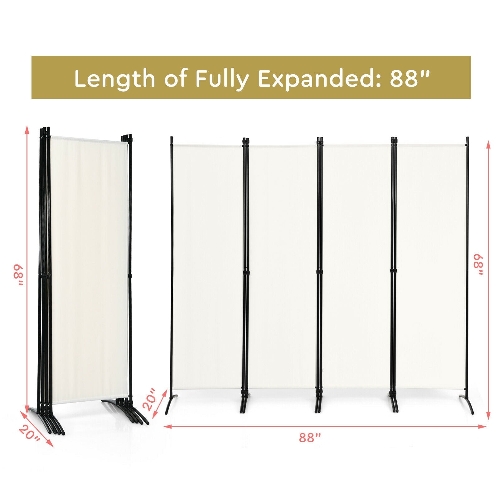 Séparateur de pièce 4 panneaux, cadre en acier, blanc