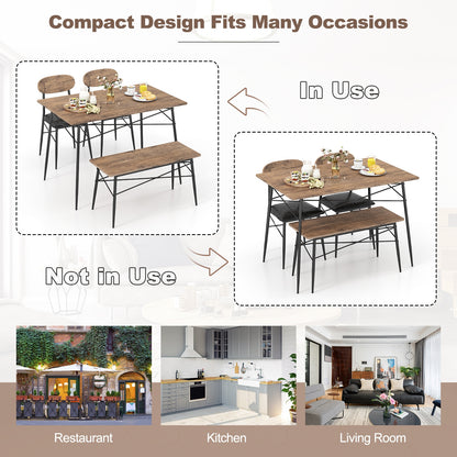 Ensemble de table à manger 4 pièces avec banc et 2 chaises, marron