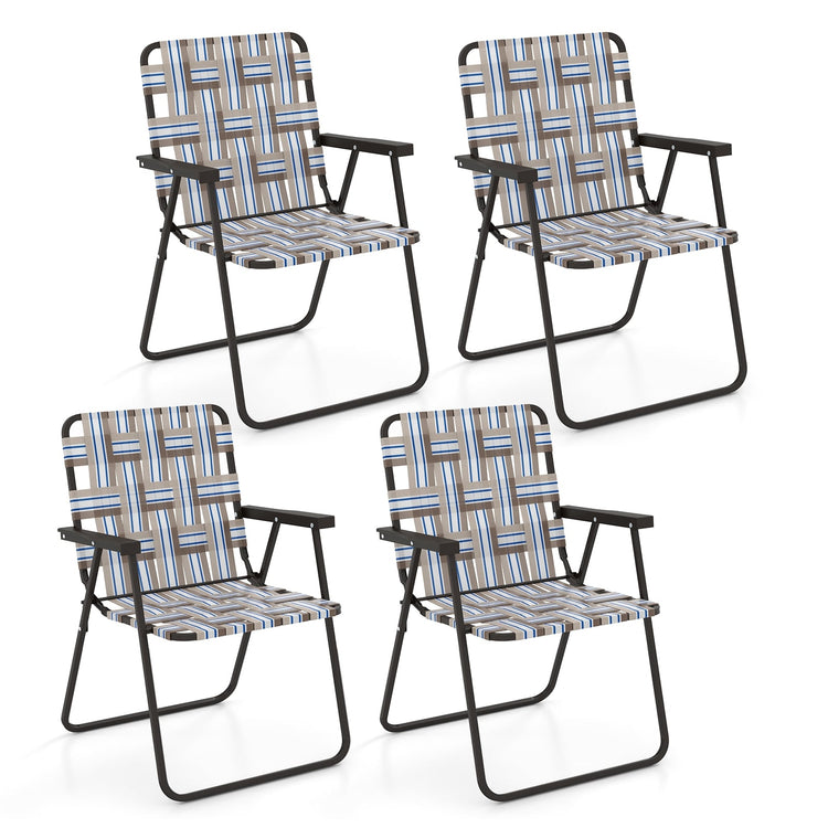 4 Pièces Chaise de Plage Pliable, Chaise de Camping en Sangle de Pelouse, Café