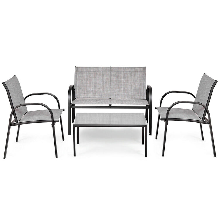 4 Pieces Patio Furniture Set with Glass Top Coffee Table, Gray