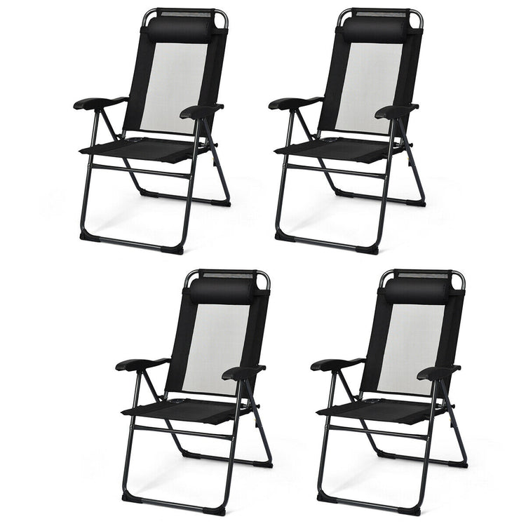 4 Pieces Patio Garden Adjustable Reclining Folding Chairs with Headrest, Black