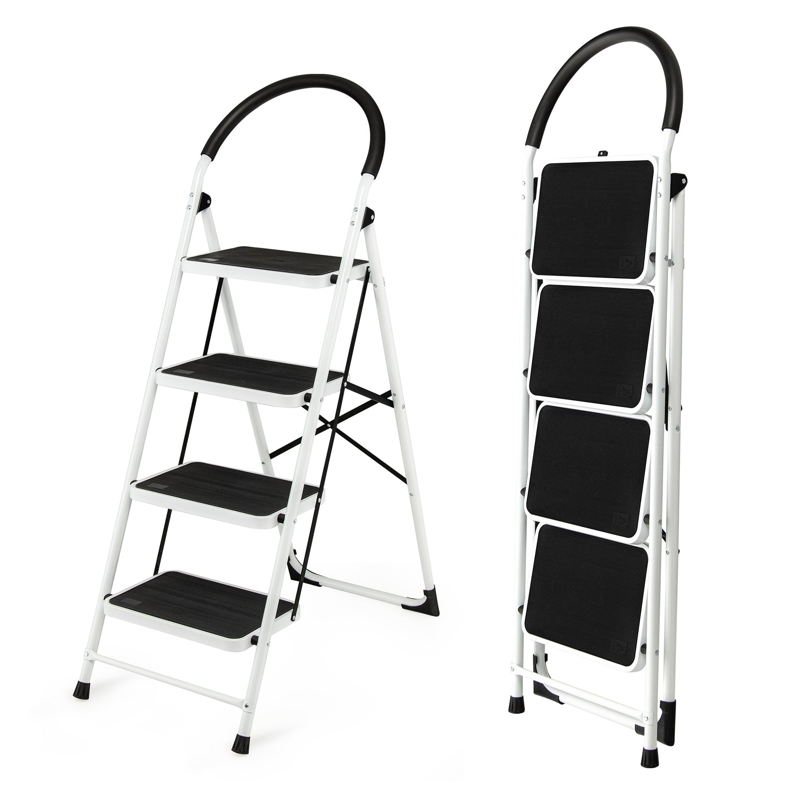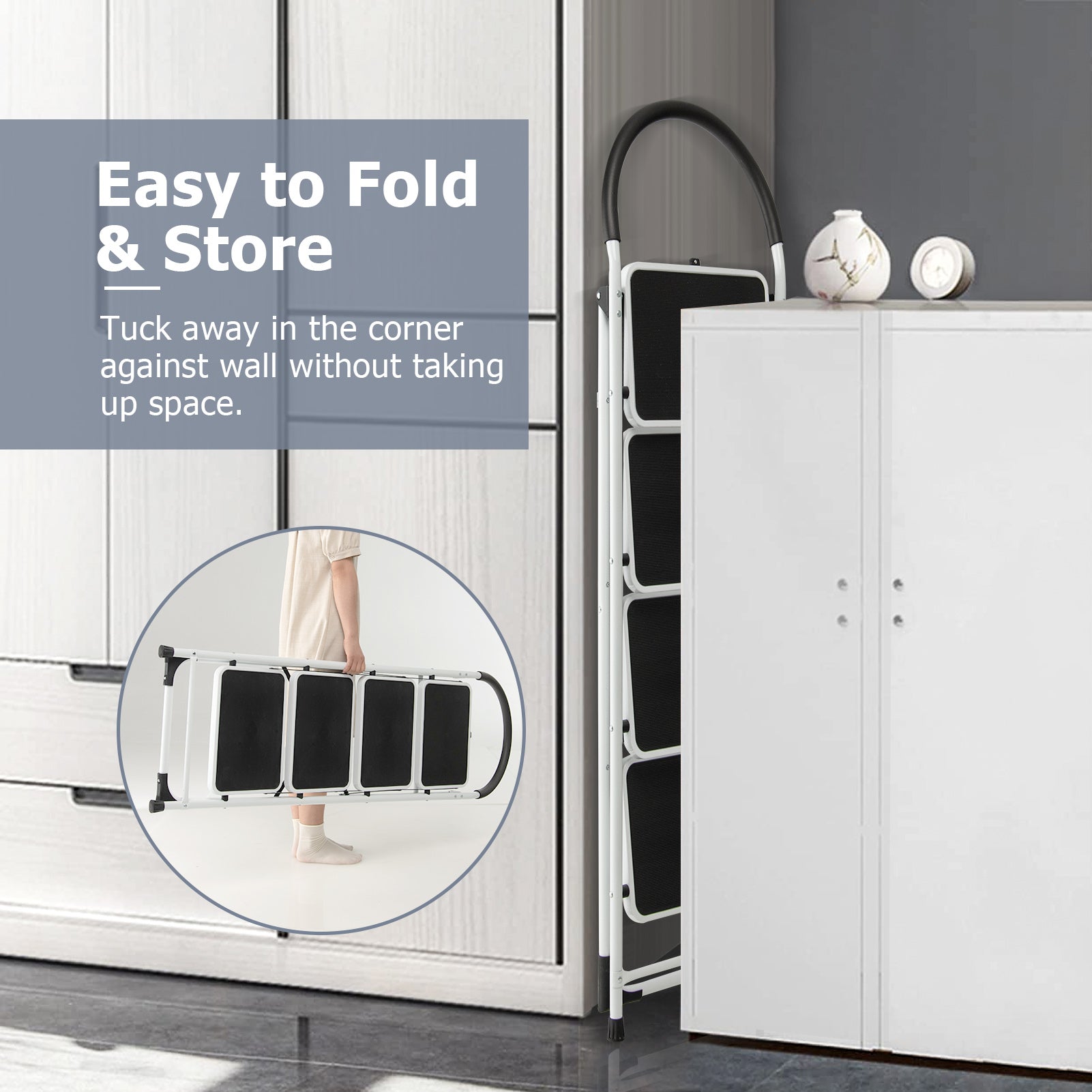 4-Step Folding Ladder, Anti-Slip Pedal, 330Lbs Capacity, Black