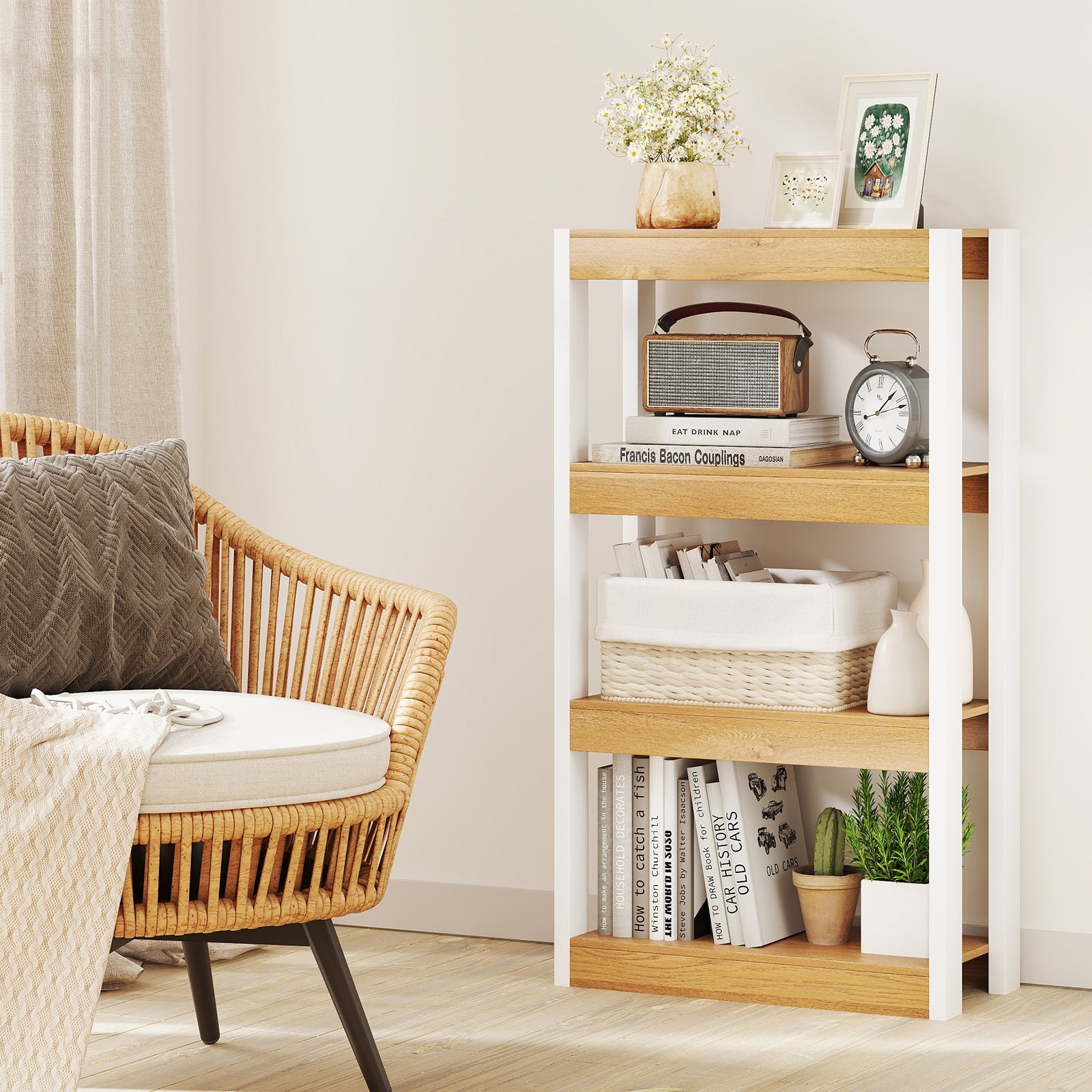 4 Tier Bookshelf Wooden Bookcase with Dual Anti-Tipping Kits, Natural