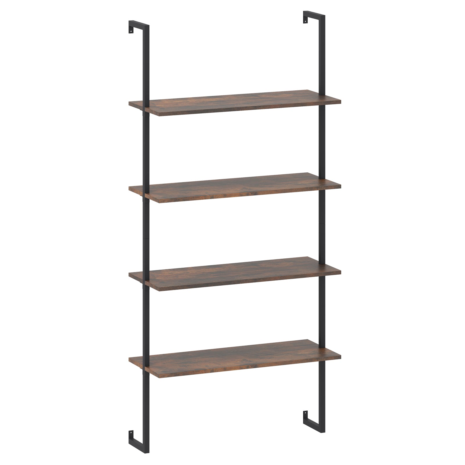 - Industrial-style wall-mounted ladder shelf with 4 shelves for ample storage