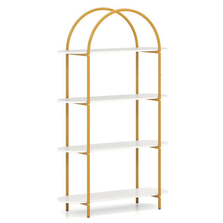 4-Tier Open Bookcase with Sturdy Metal Frame for Living Room-WH, White & Golden