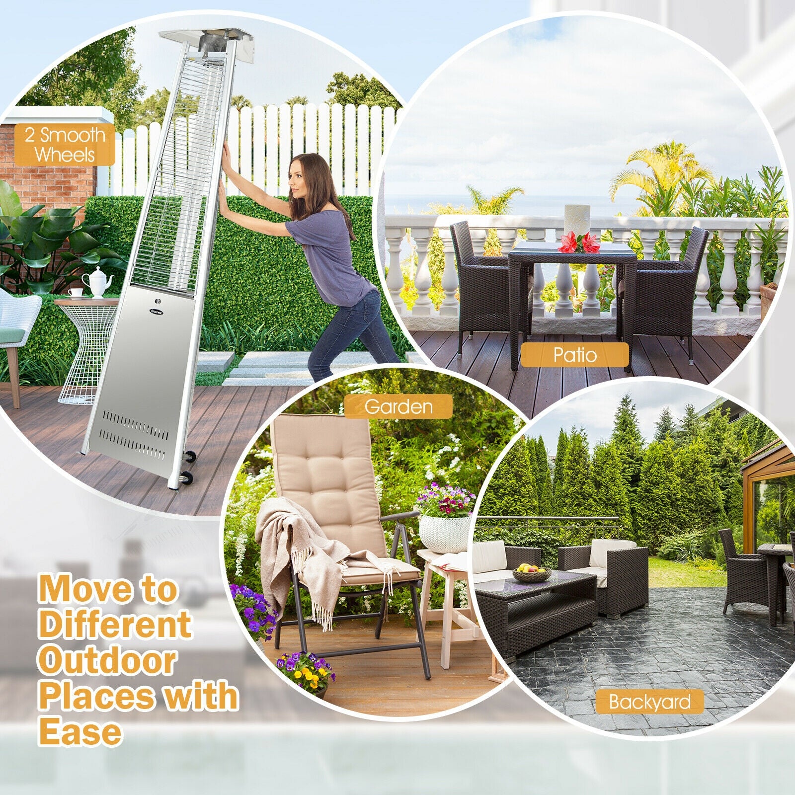 • Fournit un chauffage extérieur efficace avec une puissance de 42 000 BTU pour les terrasses, jardins et arrière-cours