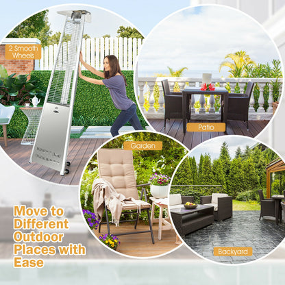 42 000 BTU Chauffage de terrasse pyramide en acier inoxydable avec roues, argenté