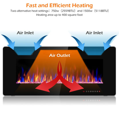 Améliorez votre maison avec cette cheminée électrique moderne offrant 12 couleurs de flamme, 12 couleurs de lit et 5 réglages de luminosité pour une ambiance personnalisable. Profitez d'un chauffage de 750W/1500W avec bouche d'aération frontale, télécommande, écran tactile, minuterie et fonctionnement sûr certifié ETL. Parfaite pour une installation murale ou en insertion, elle fournit un chauffage d'appoint pour des zones jusqu'à 400 pieds carrés sans poussière ni gaz nocifs.