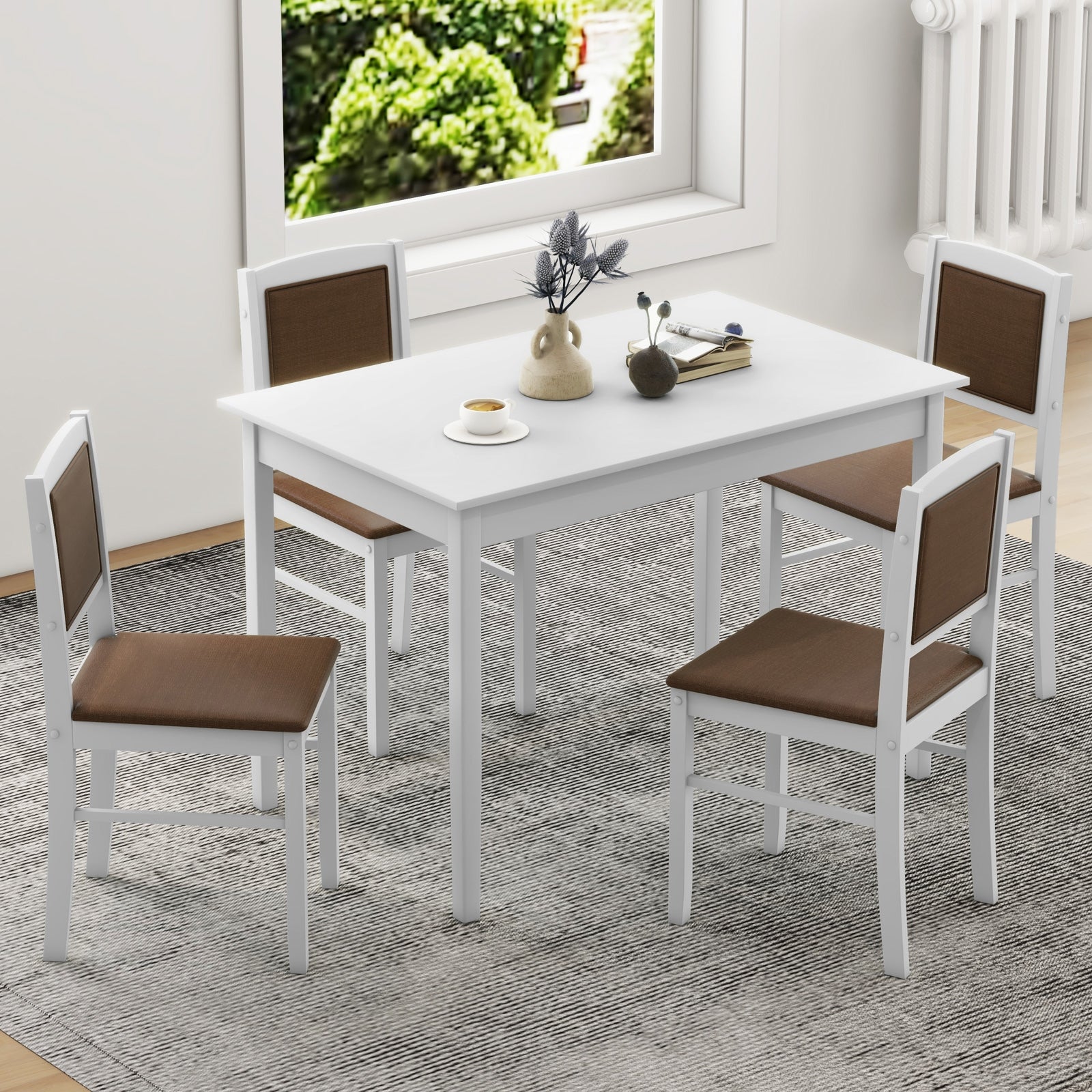 5-Piece Dining Set For 4, Rubber Wood Legs, White