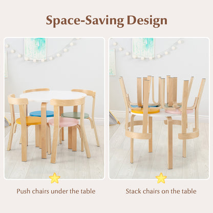 Kids Wooden Curved Back Activity Table And Chair Set, 5-Piece, Multicolor