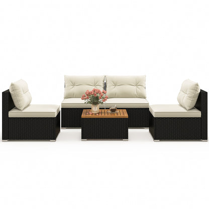 Ensemble de mobilier d'extérieur 5 pièces avec plateau solide et coussins moelleux, blanc cassé