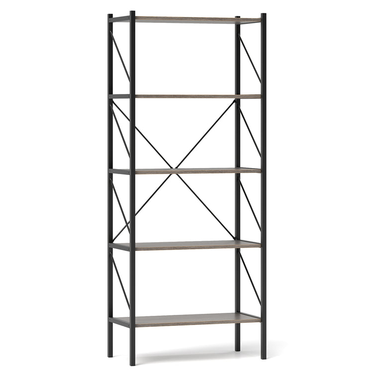 5-Tier Bookshelf with Open Shelves and Heavy Duty Metal Frame, Gray