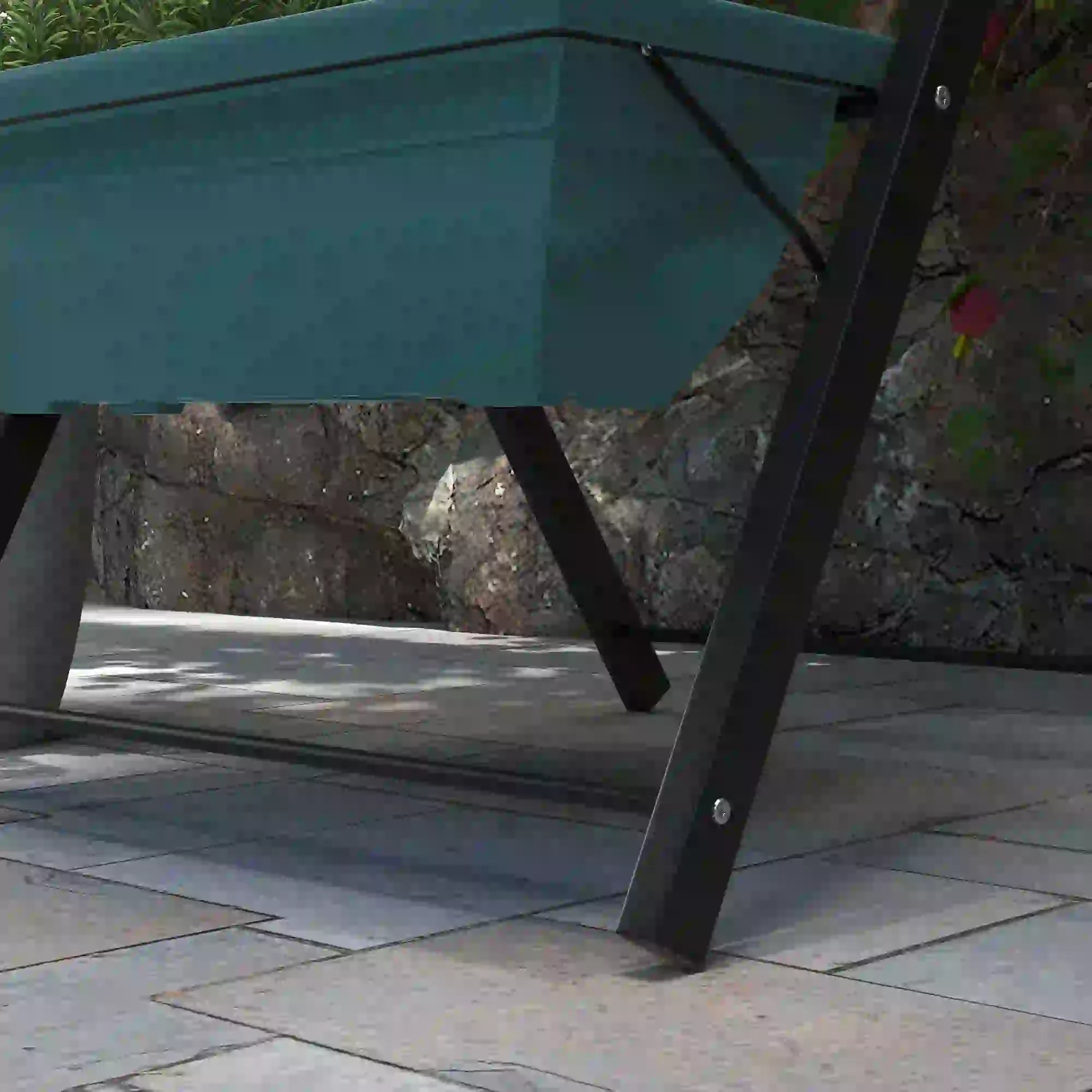 - Steel frame and plastic pots maintain their integrity in outdoor environments