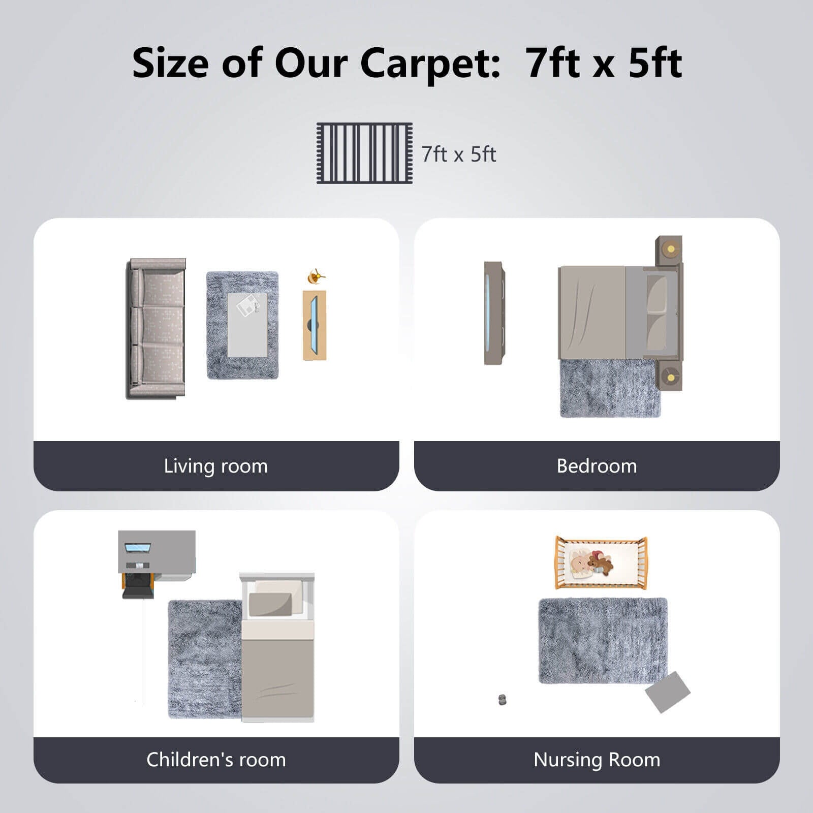 5 x 7 Feet Modern Rectangular Soft Shag Area Rug, Light Gray