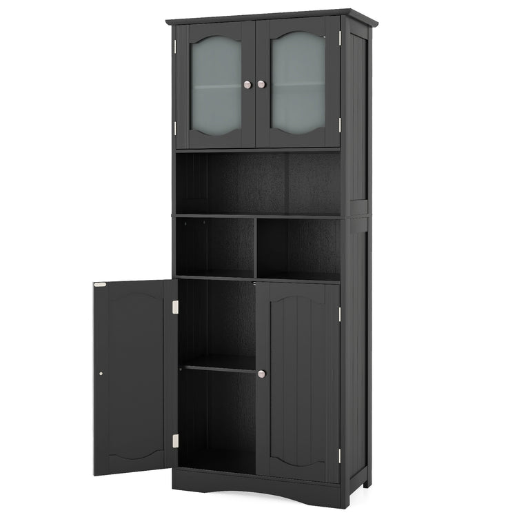 58.5 Inch Freestanding Linen Bathroom Storage Cabinet with Frost Glass Doors, Black
