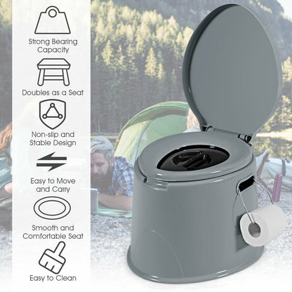 5L Portable Travel Toilet with Paper Holder for Outdoor, Gray