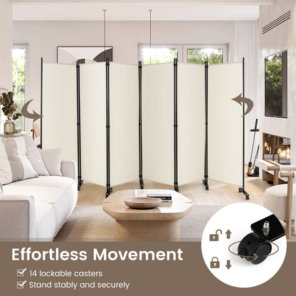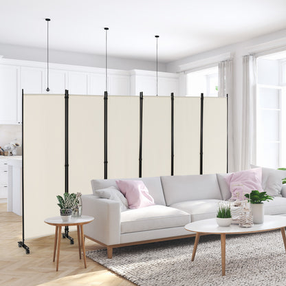 Séparateur de pièce roulant 6 panneaux 5,7 pieds sur roues, blanc