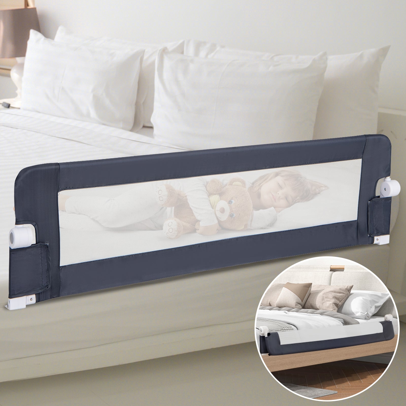 60-Inch Foldable Bed Rail Swing Down Baby Bed Guard Rail with Adjustable Safety Strap-Grey, Gray