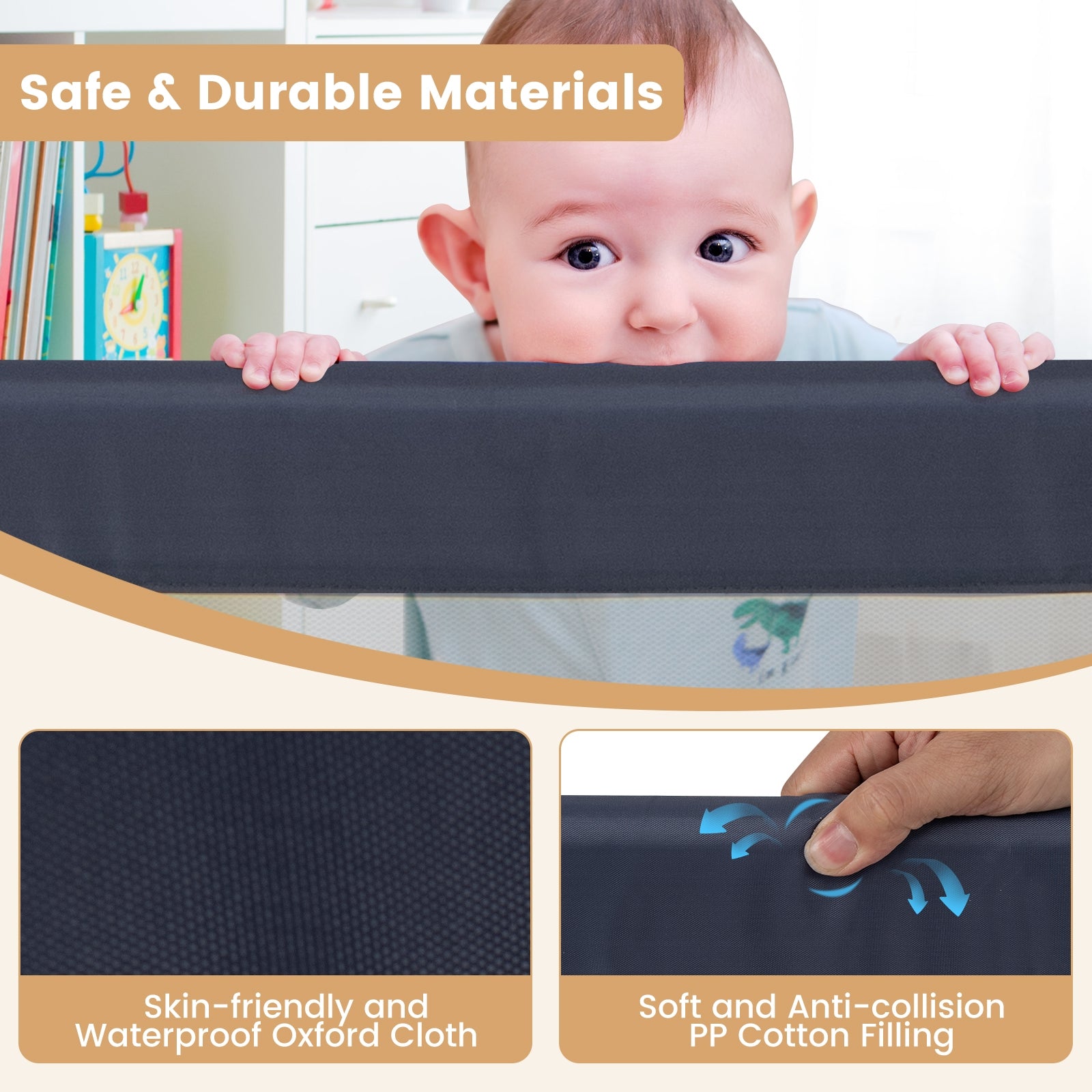 Reliable Safety and Durability: The toddler bed rail is made of skin-friendly and waterproof oxford cloth plus solid metal tubes, which is built to last. Besides, it also designed with the soft and anti-collision PP cotton filling and round corner, preventing your baby from getting hurt.
