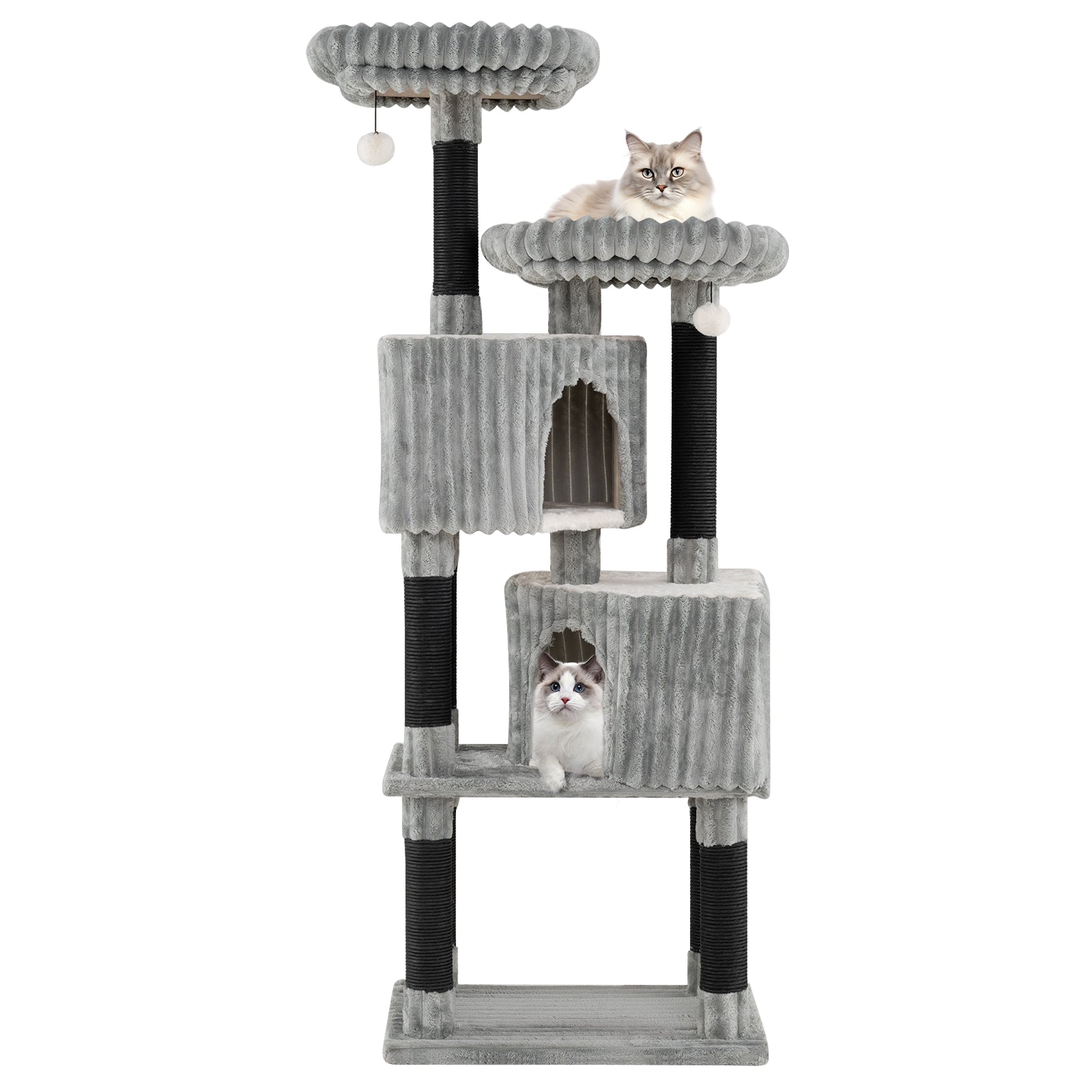 Spacious 2 Condos: The dual condos come with 3 entrances, providing stimulating play and hideaway options ideal for multi-cat households. These spacious hideouts, lined with warm faux rabbit fur, encourage social interaction and relaxation, offering your cats privacy in a safe, comfortable environment.