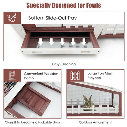 Cage à lapin en bois de 62 pouces avec bac amovible, Rouge
