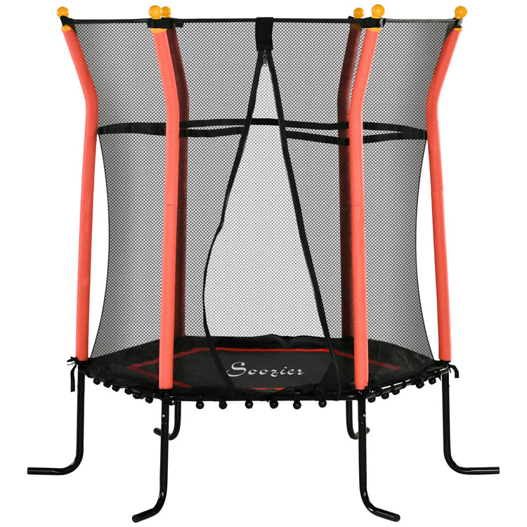 64" Trampoline pour Enfants, Intérieur Extérieur, Filet d'Enclos, Rouge