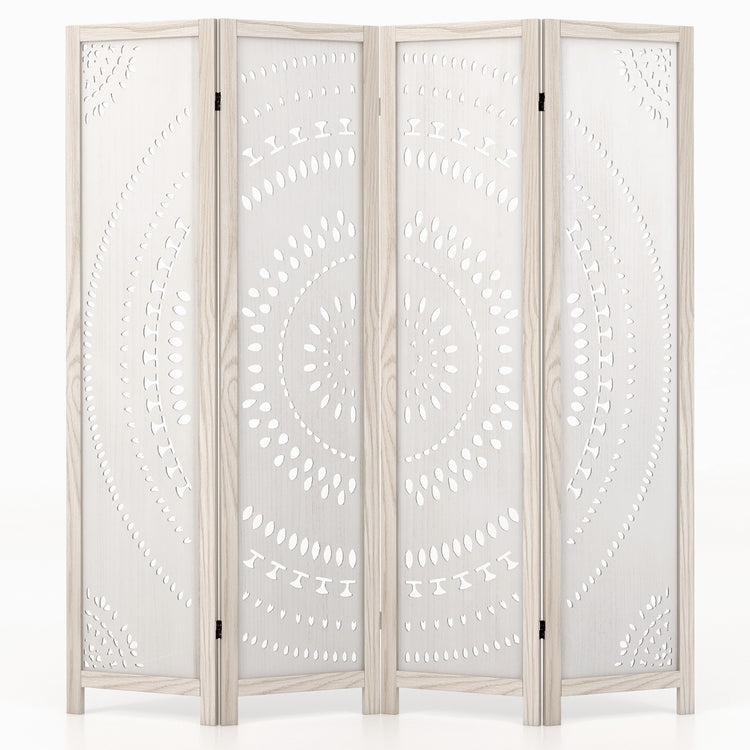 66 Inch Boho 4-Panel Room Divider Privacy Screen with Carved Pattern, White