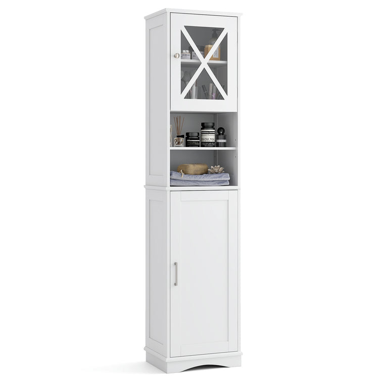 Spacious Storage Options: Our tall bathroom cabinet offers sufficient storage for tight space. The 2 open compartments are suitable for displaying decorative items, or housing frequently used items, while the 2 enclosed cabinets are ideal for storing towels, toiletries, cleaning supplies, and extra bathroom products.