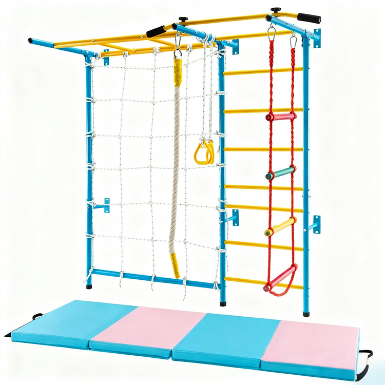 ☆ An all-in-one kids gym set with a climbing wall ladder and safety mat—ideal for active toddlers to play, exercise, and stay safe at home.