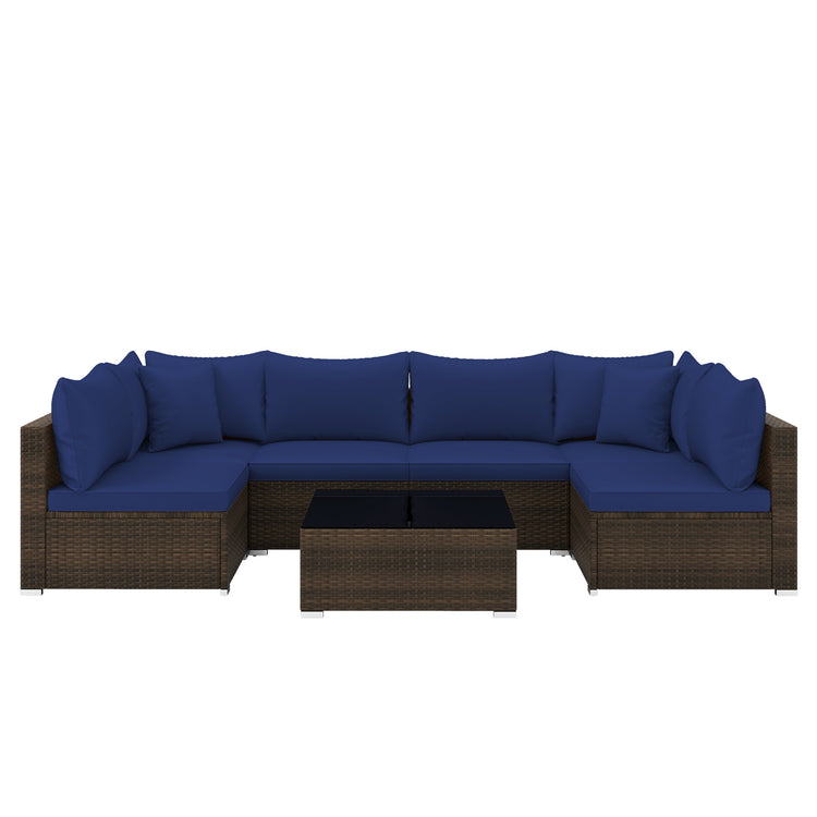 7 Pieces Patio Rattan Furniture Set with Sectional Sofa Cushions, Navy