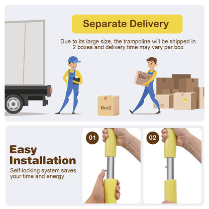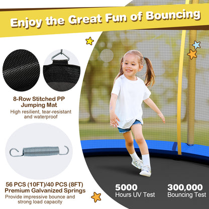 - High enclosure net with double-sided zipper keeps kids safe inside the trampoline.