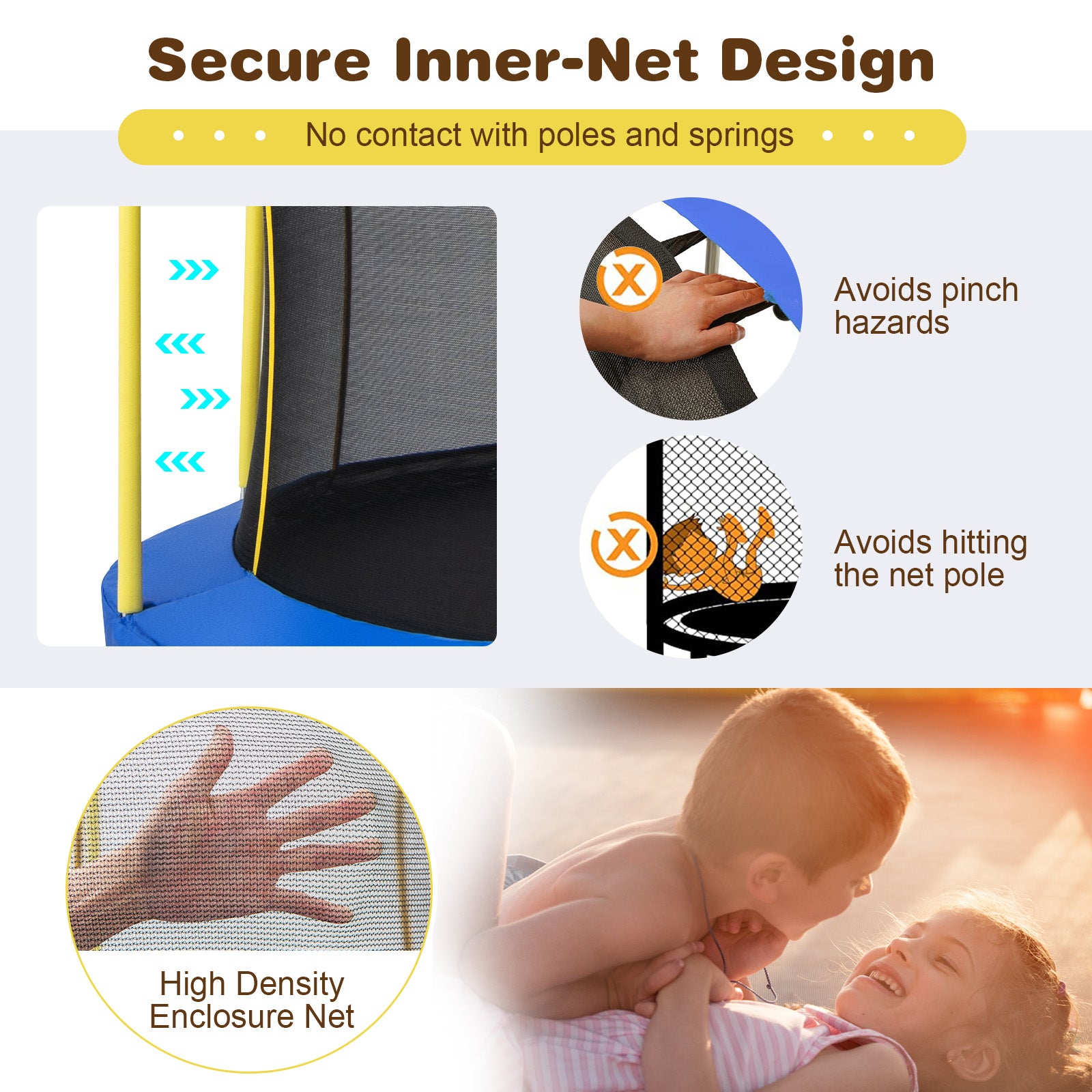 - Secure inner-net design plus 3-layer thick safety pad avoids pinch hazards.