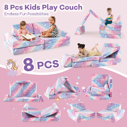 8 Pieces Modular Kids Play Couch Glow in the Dark Toddler Sectional Sofa, Multicolor