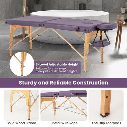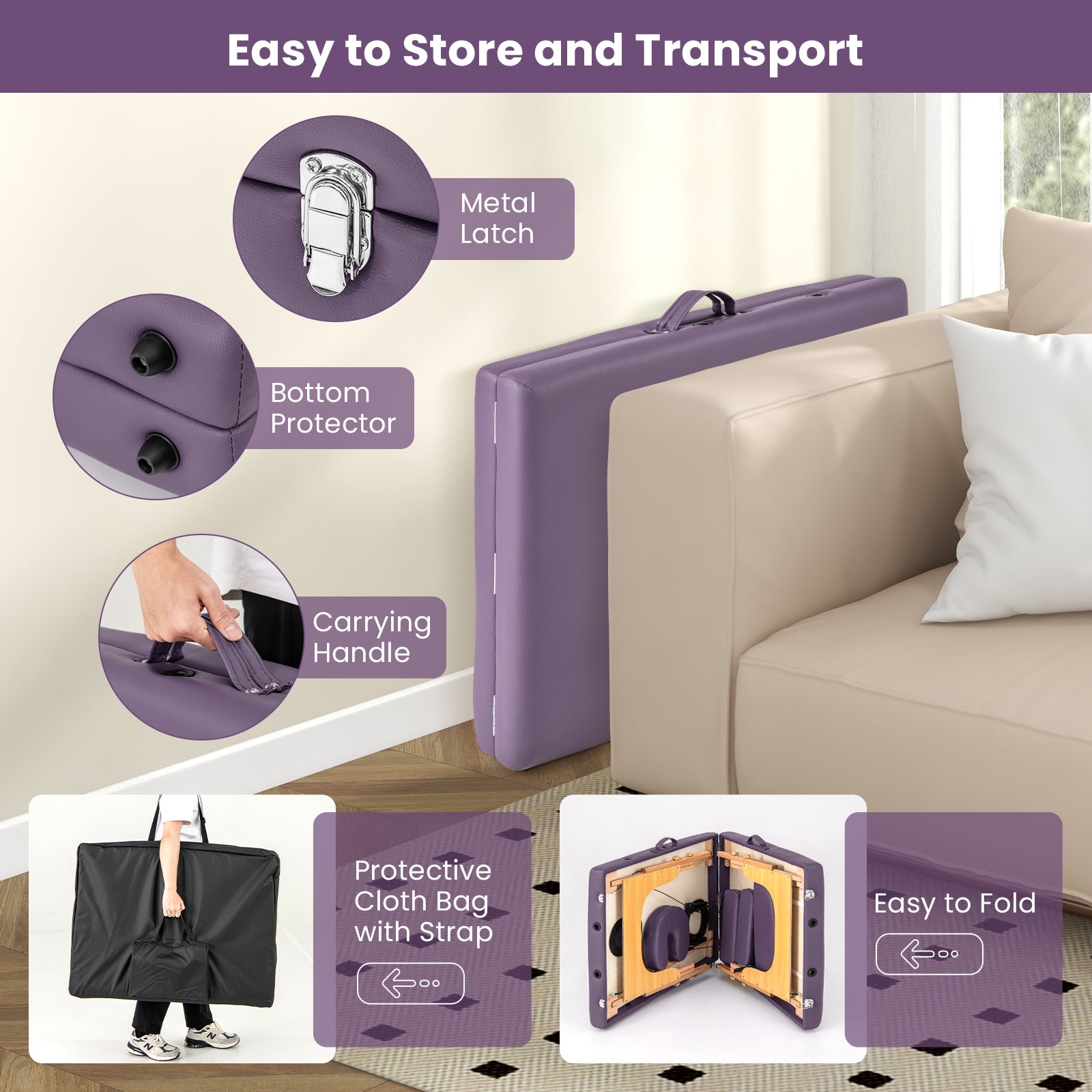 84 Inch Foldable Massage Table, Height Adjustable, Purple
