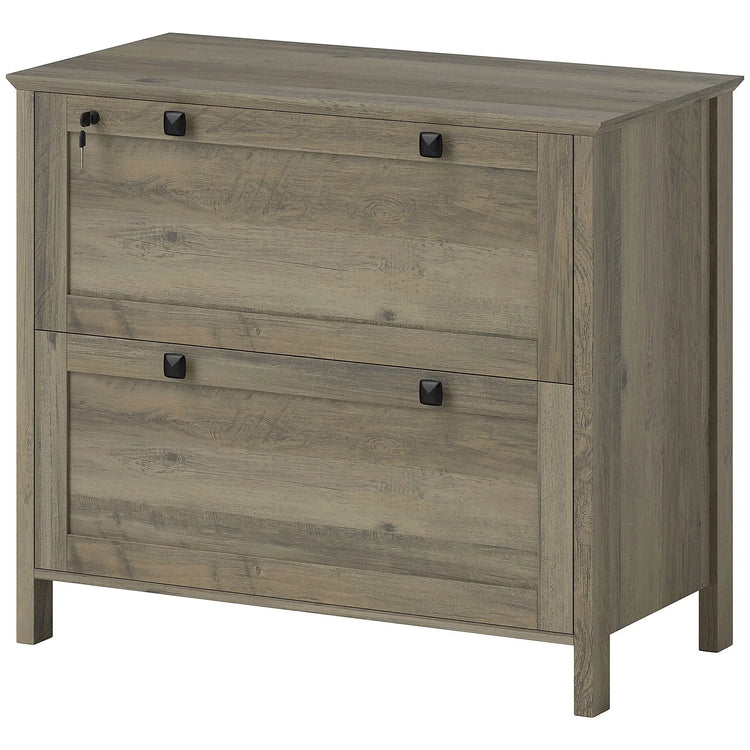 Armoire de classement à 2 tiroirs, verrouillable, barre suspendue réglable, format Lettre, format A4, chêne gris vieilli