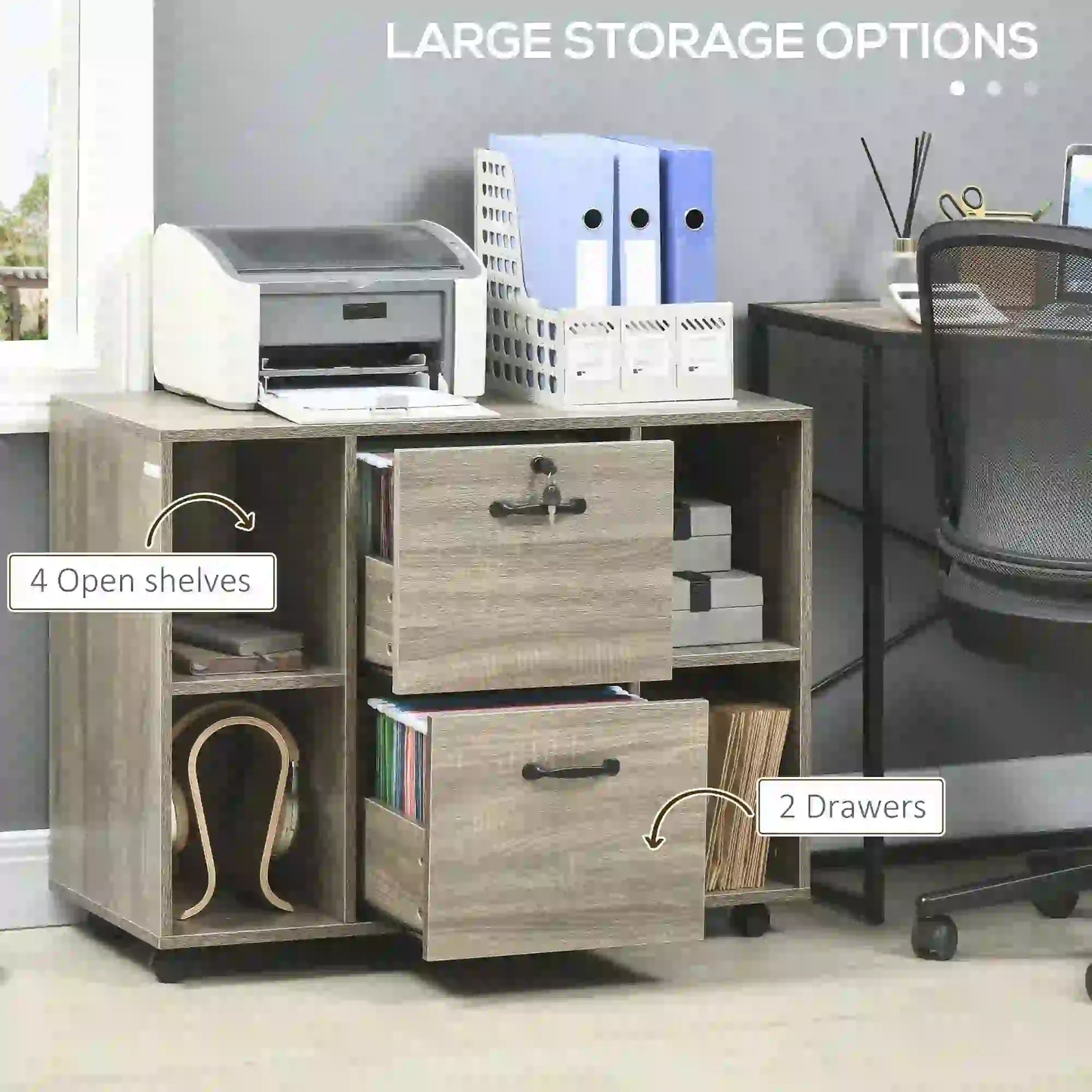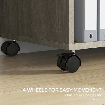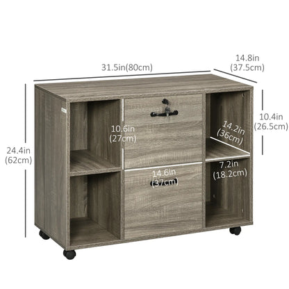 Armoire de classement latérale avec roues, tiroir verrouillable, étagères ouvertes, gris