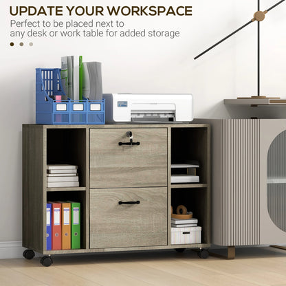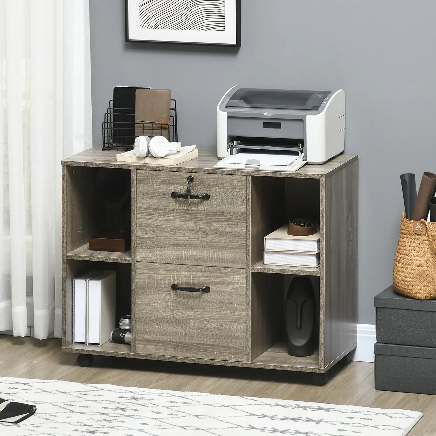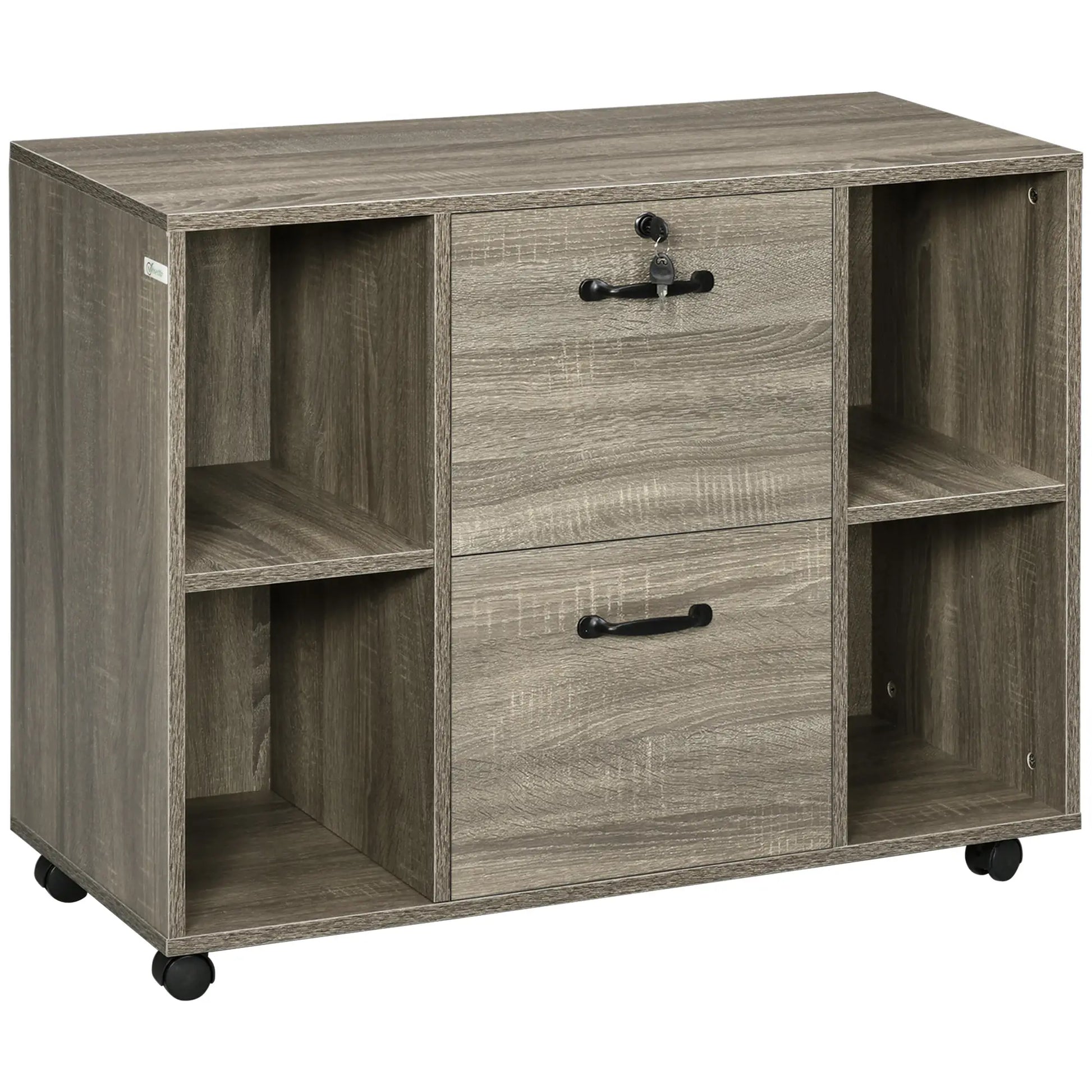 Transformez votre bureau encombré en un modèle d'efficacité avec cette table d'imprimante polyvalente. Conçue pour les petits espaces, elle offre un ample rangement avec quatre étagères ouvertes et deux tiroirs avec barres suspendues pour les fichiers de format A4 ou lettre. La mobilité est un jeu d'enfant grâce à quatre roues dont deux freinées, et le tiroir supérieur verrouillable assure que vos documents importants restent en sécurité. Fabriqué en panneau de particules mélaminé durable, ce cabinet de style industriel est à la fois robuste et facile à nettoyer.